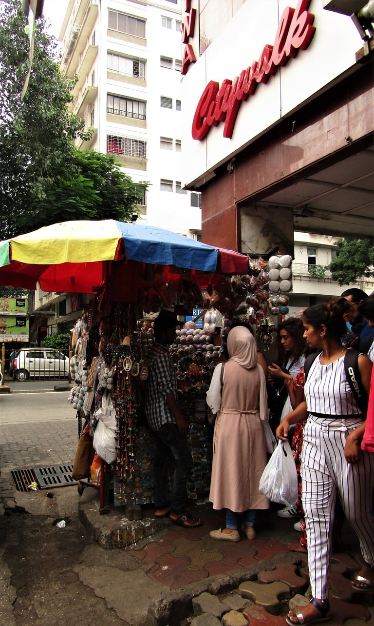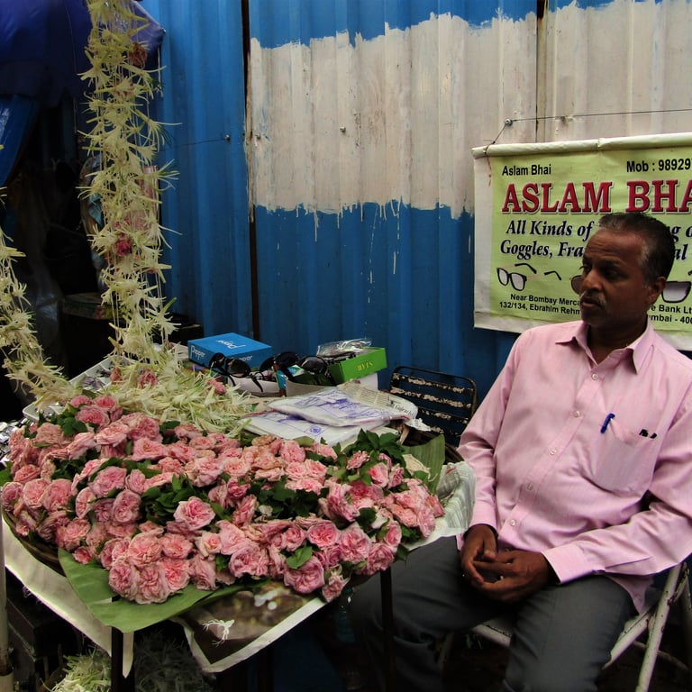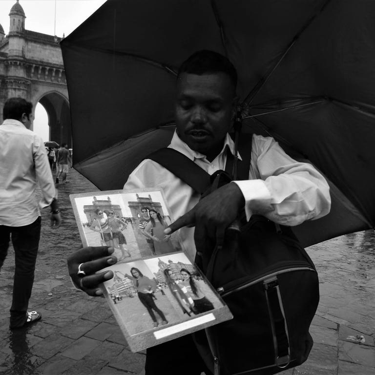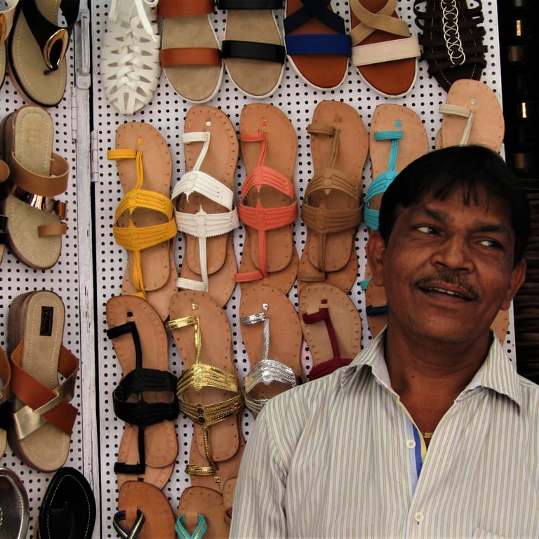 These are the working class of Bombay—vendors, shopkeepers, small business owners—moving through their days with a lightness that defies the city's weight. In Colaba Market, a man holds up Kolhapuri chappals, calling out to passersby, while another tries to make money by charging a premium to tourists. Their dreams aren't of fame or fortune but of something simpler: a good day's sale, maybe a meal with family, a life that holds steady. In a city chasing bigger and bigger things, they remind me that contentment is its own kind of ambition.