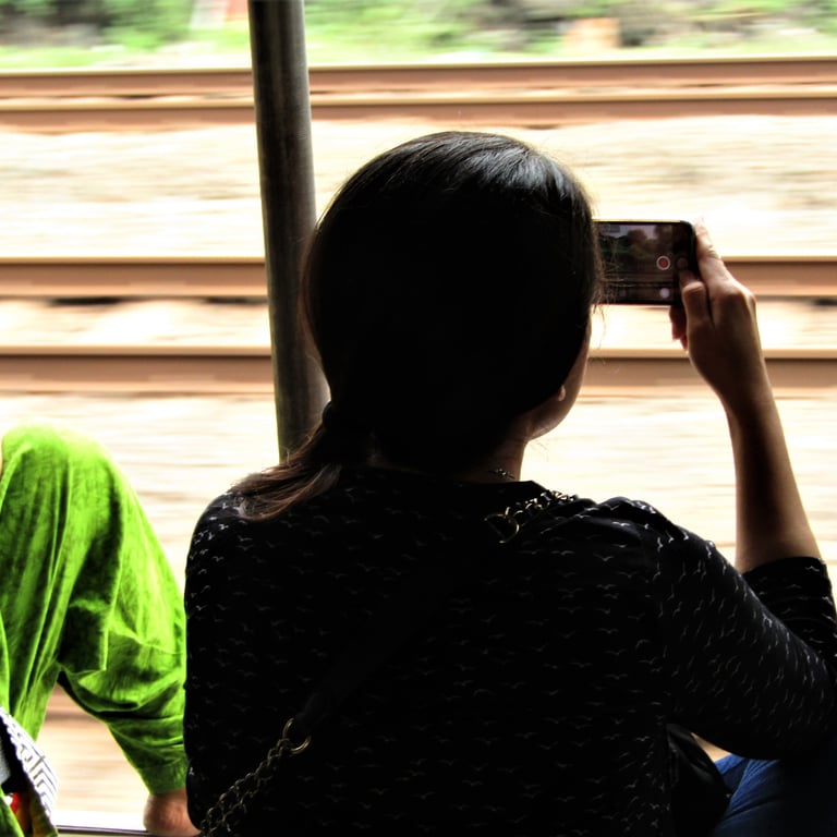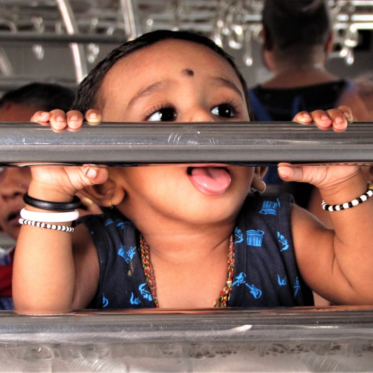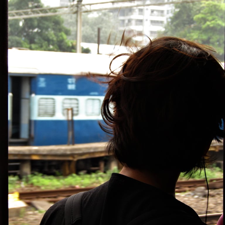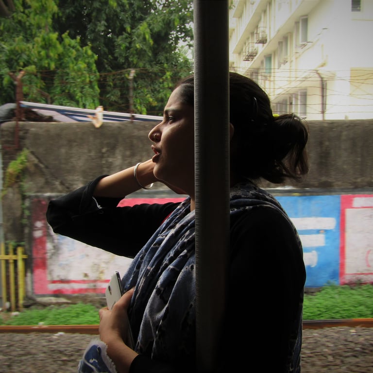 The local train is the city's lifeline. Nearly 18 million journeys a day are pressed into metal compartments, where strangers become temporary neighbors. Women sit near the open door, wind catching their hair as the city rushes past. A girl with earphones stares out at nothing, lost somewhere between stations. A child licks the metal railings playfully, oblivious to the crowd and germs. These are the in-between moments, when the commute briefly belongs to no one but the person living it.