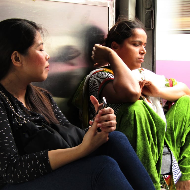 During a fifteen-day work trip in 2017, I made time over the weekends to wander with locals through trains, flea markets, beaches, and side streets. I wasn't looking for the city's famous chaos. I was drawn to what exists beneath it: vendors pausing between sales to share family stories like old friends, tourists filming on the local train—the lifeline of the city—a photographer at the Gateway of India showing his portfolio to passersby. Our driver's sincere smile as he told us how content he is despite daily struggles. He showed us the city's poshest neighborhoods, where Bollywood stars and businessmen live behind guarded gates.