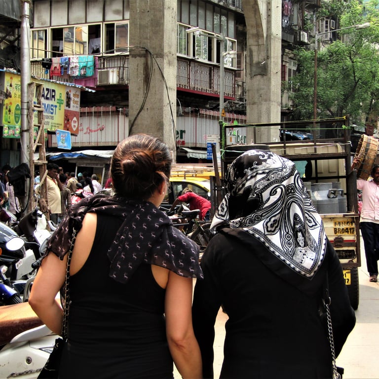 For every polished facade in South Bombay, there's a tattered tarp holding someone's life together a few miles away. This section holds the contrasts: weathered buildings beside quiet shrines, a Muslim cemetery so lush it feels forgotten by time, colored pigeons and ducks wandering unbothered. This is the Bombay that doesn't make it onto postcards—the city's other face, just as real, just as alive. The two exist side by side, and neither makes sense without the other.